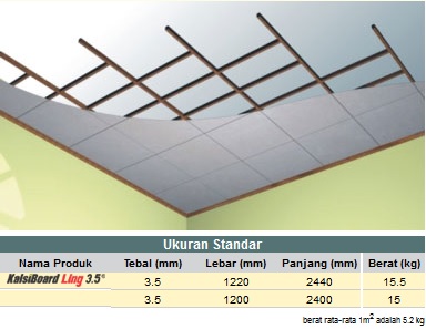 KalsiBoard Ling 3.5 merupakan solusi yang cepat dan ekonomis untuk aplikasi plafon sebagai solusi pengganti triplek atau untuk pengerjaan renovasi plafon.