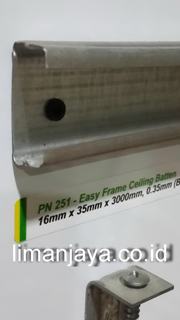 Tanggal Posting : 16 September 2014 Tanggal terakhir di ubah : 22 September 2017 Easyframe Ceiling Batten 16mmx35mmx3mtr t. 0.35mm PN 251 Category : RANGKA PLAFON & PARTISI BMS